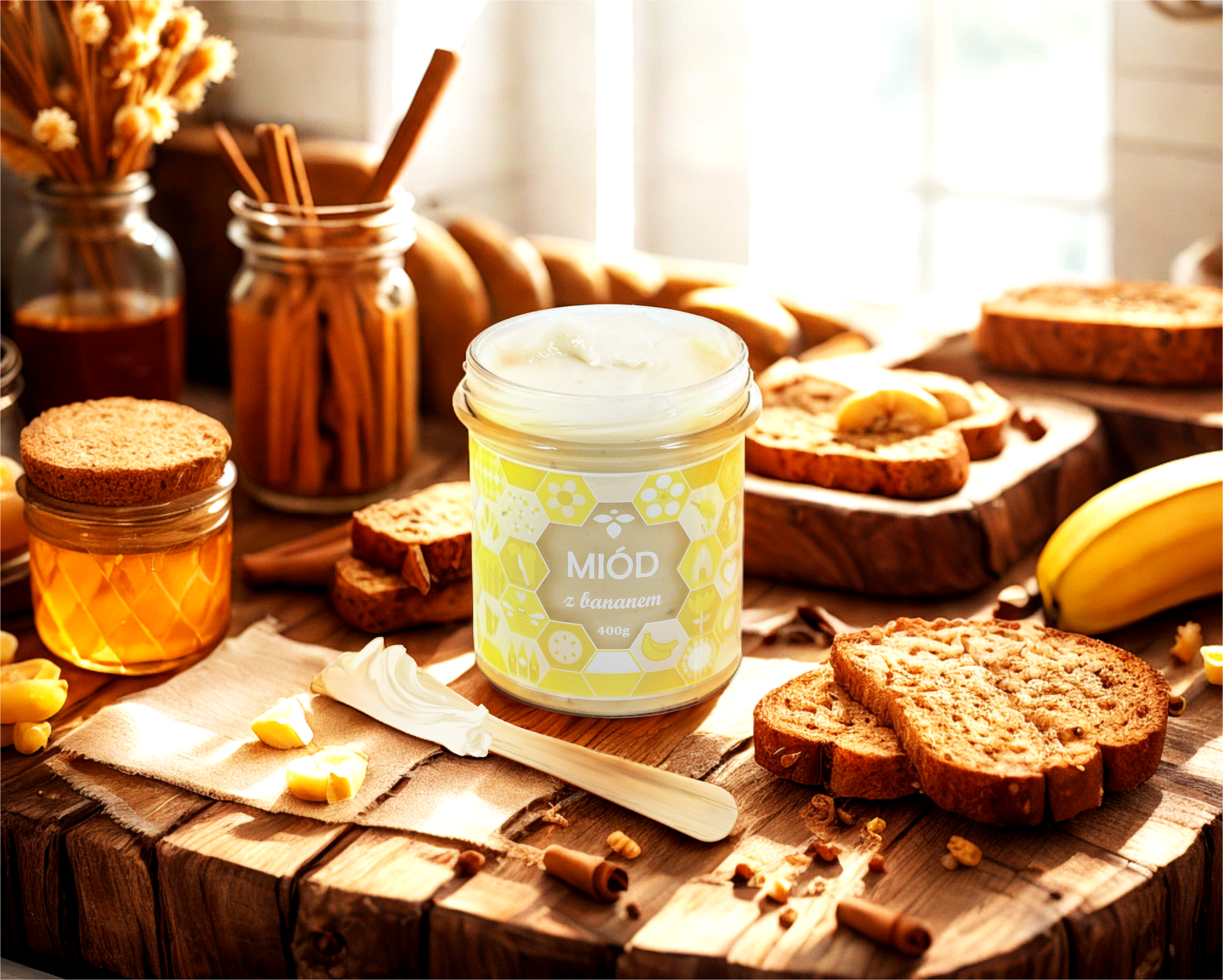Miód rzepakowy z liofilizowanym bananem to kremowe połączenie naturalnej słodyczy i delikatnego, egzotycznego smaku. Doskonale sprawdzi się jako dodatek do owsianek, naleśników czy koktajli, dodając im aksamitnej konsystencji i wartości odżywczych. To pyszna i zdrowa propozycja dla miłośników miodowych przysmaków!