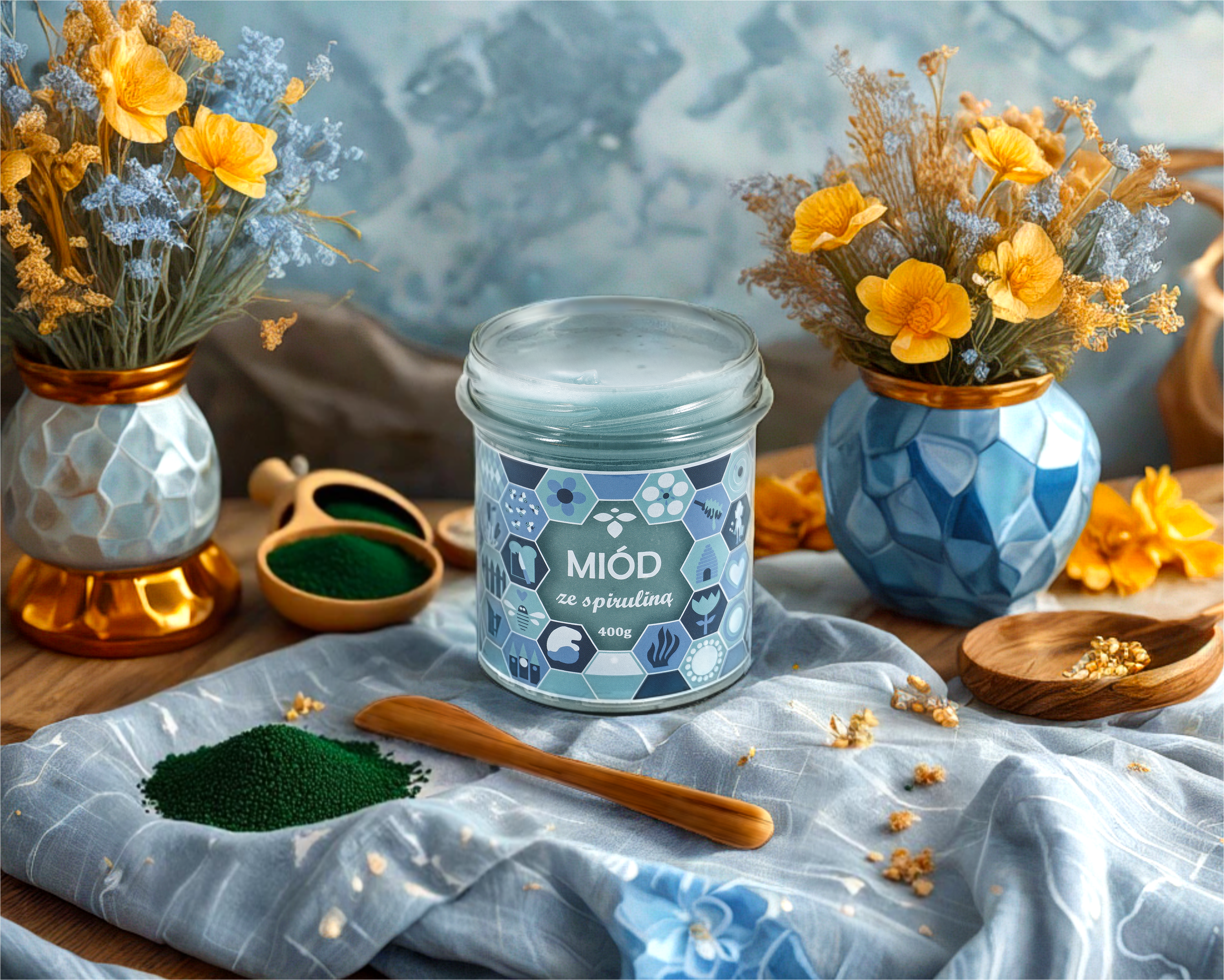 Miód ze spiruliną 400g